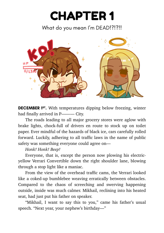 To come back to life, Mikhail will have to play a game of *checks hand* bingo with a man whose heart might be colder than winter itself. If he fails to win in twenty-five days, he’ll be deleted from the environment. Only the power of love can help him ✨RETURN TO THE WORLD!!!!